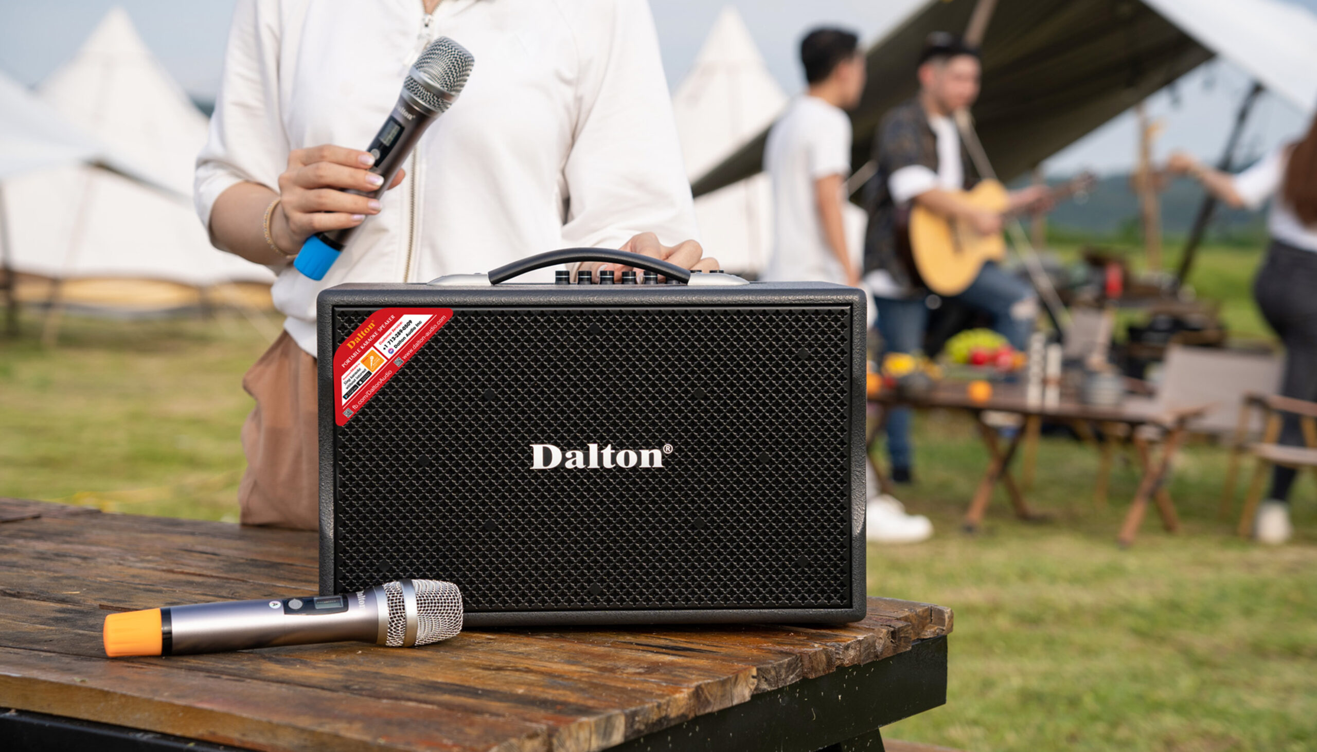 The Dalton KS8Pro portable speaker also has two UHF wireless microphones that can be adjusted to 16 different frequencies in order to minimize frequency overlap with other speakers. The microphone may link to numerous Dalton speakers at once to cover more sound in the desired space.